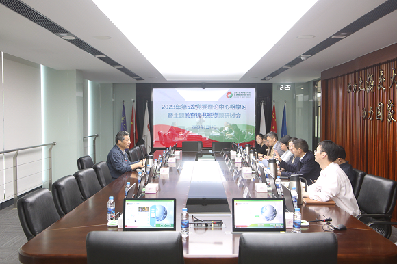 5月10日,国产原创av 党委领导班子于上午参加学校主题教育专题读书班,聆听校党委书记杨振斌关于《学习贯彻习近平总书记关于高等教育的重要论述》辅导报告,并于当日下午围绕“学习习近平总书记关于‘三新一高’的重要论述,实干担当促进发展”专题,组织召开学院主题教育读书班专题研讨会。会议由学院党委书记程伯儒主持。