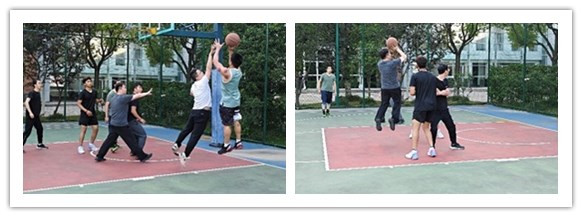 篮球比赛激情四射,精彩绝伦,师生双方发球、运球、传球、拼抢……,将比赛一次又一次推至高潮。